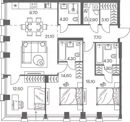 42 623 791 ₽5+к.квартира, 99.4 м², 21 эт.