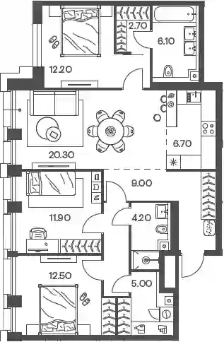 В проекте представлено множество планировочных решений — все лоты сдаются с увеличенными или панорамными окнами, высотой потолков до 3,85 метров и базовой отделкой. Имеются петхаусы с приватными террасами.