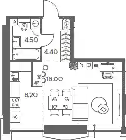 Студия, 35.1 м², 3 эт. в ЖК INJOY Корпус 1