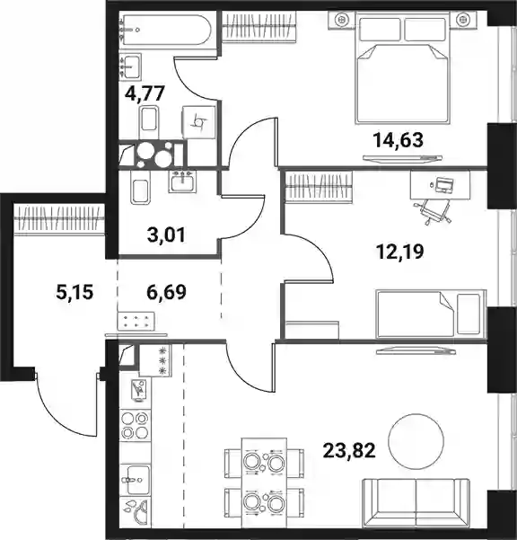 39 357 414 ₽3-к.квартира, 69.15 м², 24 эт.