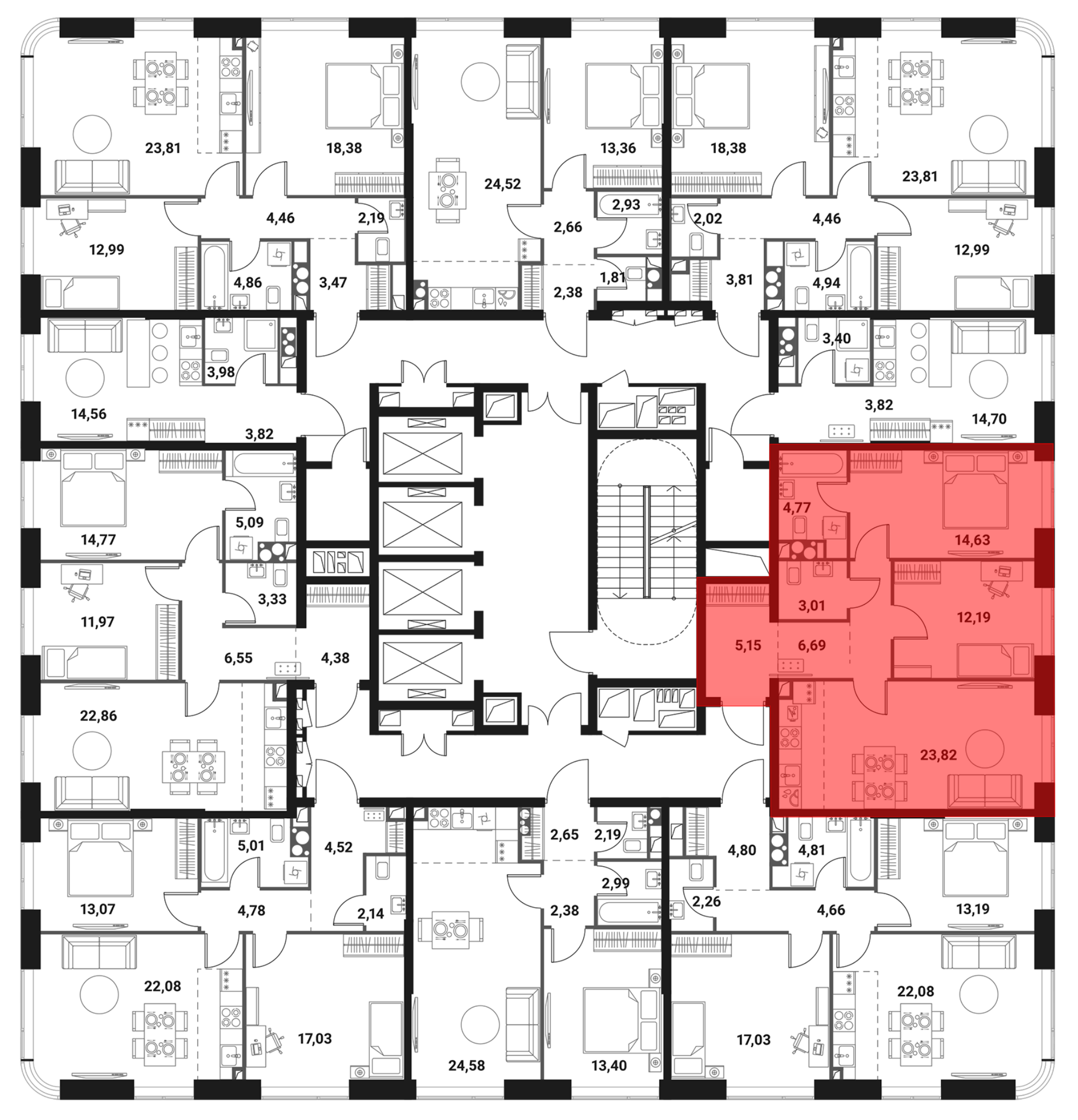 38 119 389 ₽3-к.квартира, 68.52 м², 24 эт.