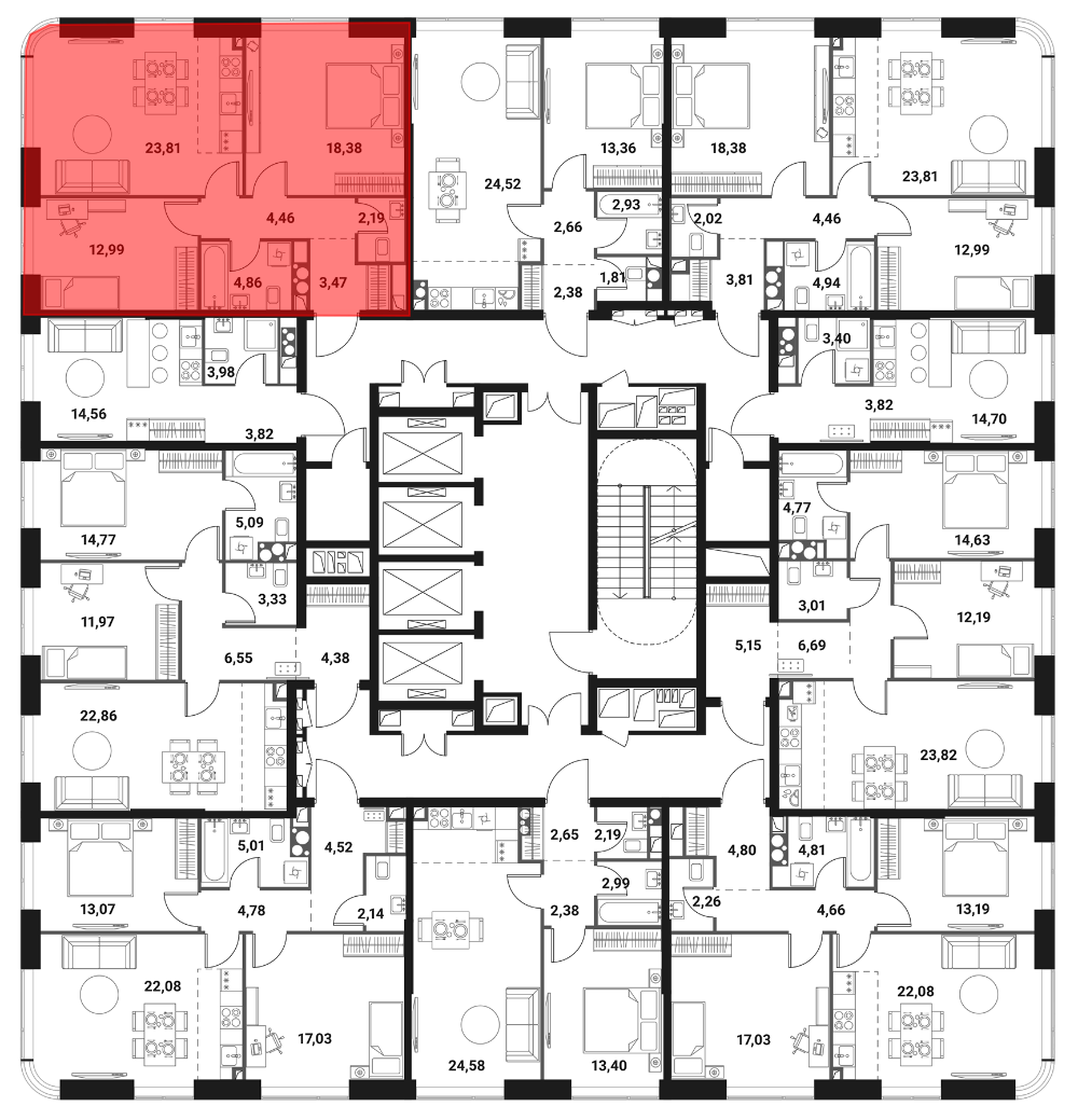 Покупателям в ЖК «Инноватор» предложены студии, двух-, трех-, четырех- и пятикомнатные варианты общей площадью от 21 до 137 кв.м. В квартирах выполнено панорамное остекление. Высота потолков достигает 3,1-4,5 м. Квартиры сдаются без отделки.