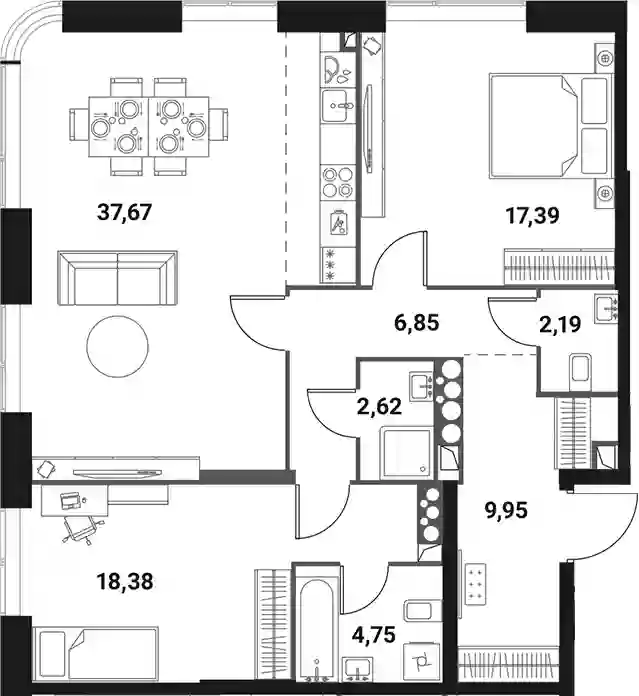 Покупателям в ЖК «Инноватор» предложены студии, двух-, трех-, четырех- и пятикомнатные варианты общей площадью от 21 до 137 кв.м. В квартирах выполнено панорамное остекление. Высота потолков достигает 3,1-4,5 м. Квартиры сдаются без отделки.