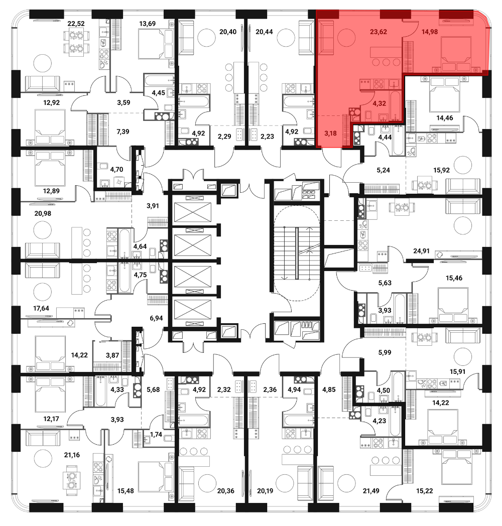 26 427 564 ₽2-к.квартира, 45.7 м², 19 эт.