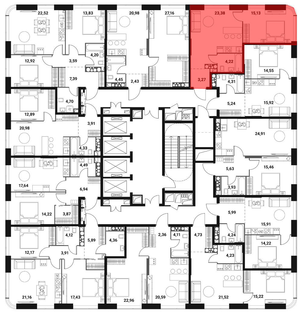 22 715 013 ₽2-к.квартира, 42.7 м², 15 эт.