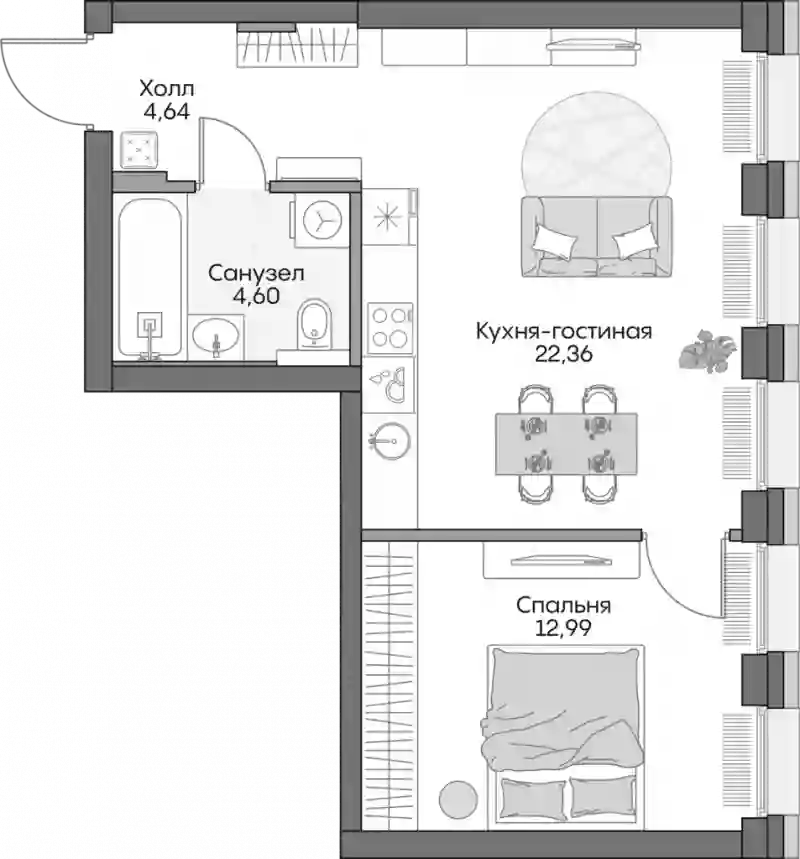 20 646 170 ₽1-к.квартира, 43.9 м², 13 эт.