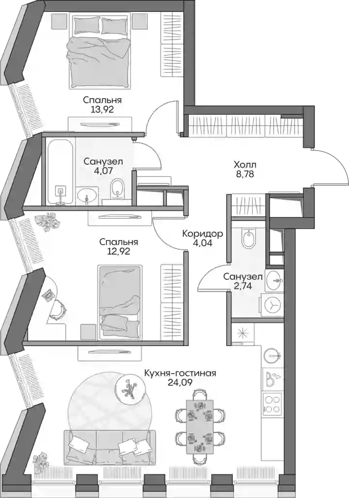 3-к.квартира, 68 м², 7 эт. в ЖК Insider Корпус 2
