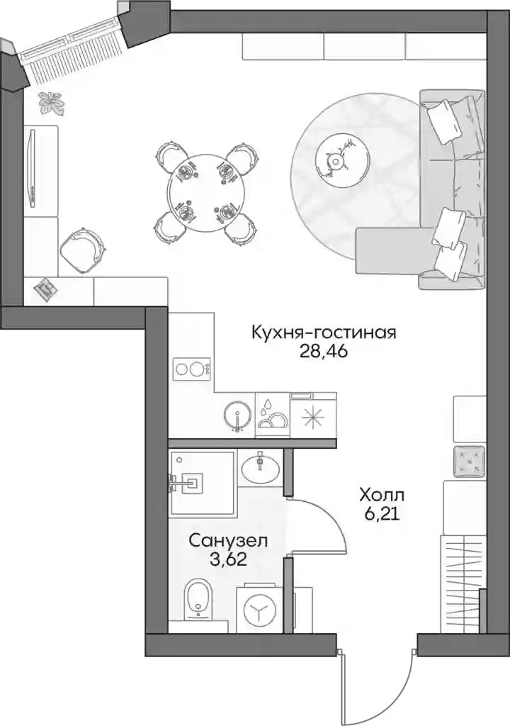Студия, 37.3 м², 3 эт. в ЖК Insider Корпус 2