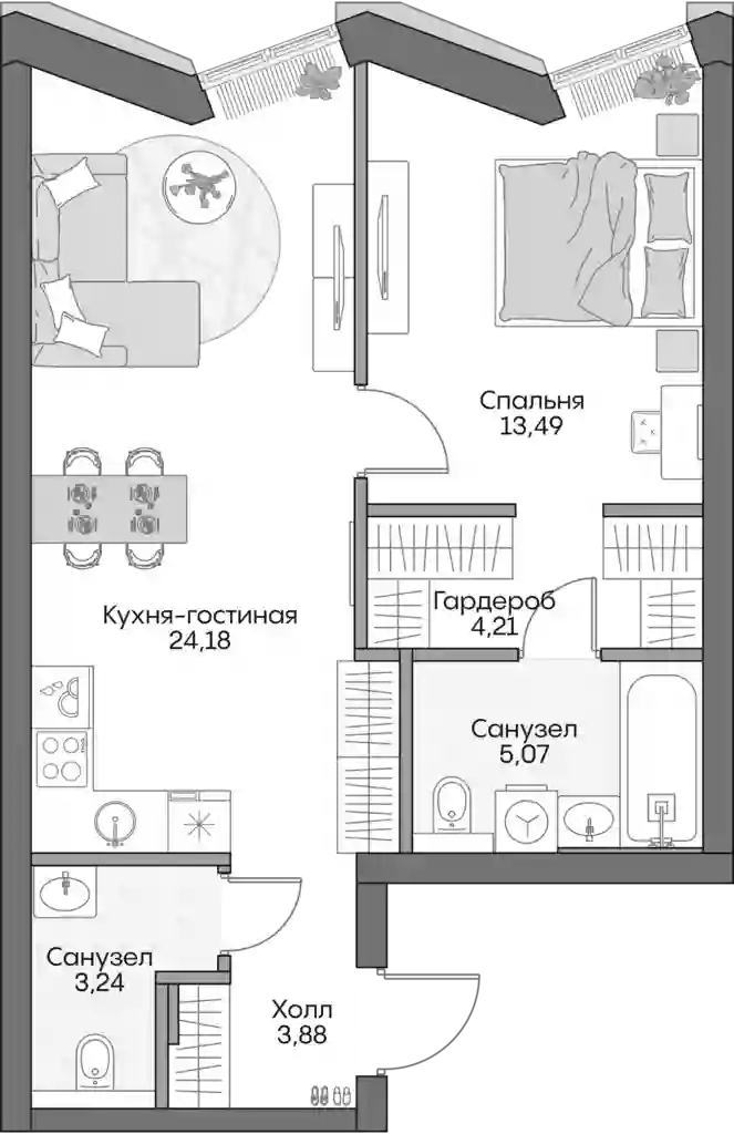 2-к.квартира, 52.8 м², 10 эт. в ЖК Insider Корпус 3