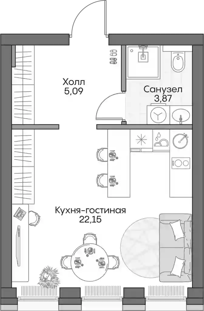 Студия, 29.9 м², 9 эт. в ЖК Insider Корпус 3