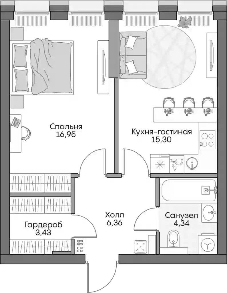 20 646 170 ₽1-к.квартира, 43.9 м², 13 эт.
