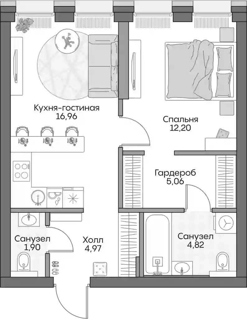 21 444 240 ₽1-к.квартира, 44.9 м², 19 эт.