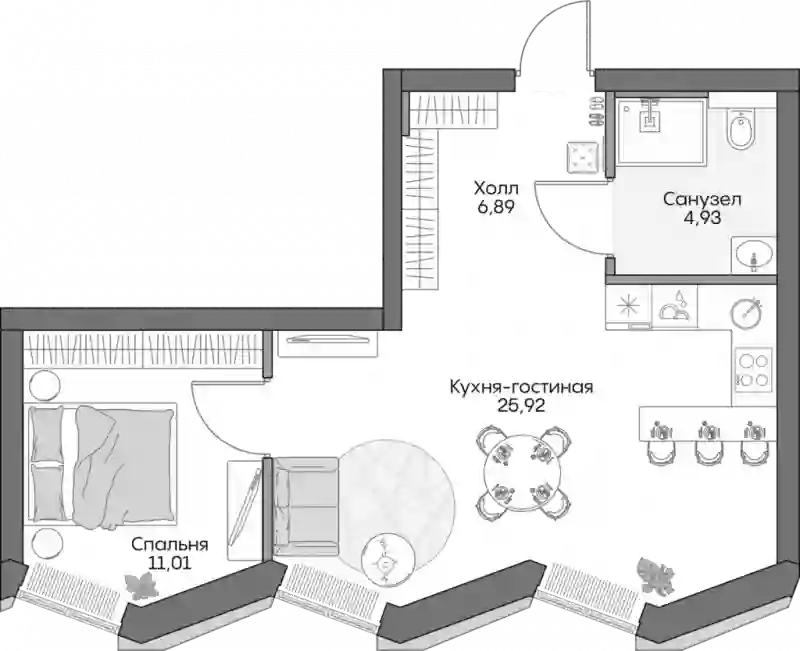 25 907 484 ₽1-к.квартира, 44.8 м², 9 эт.