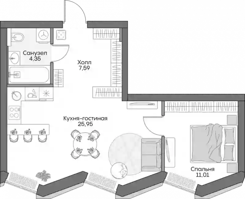 25 907 484 ₽1-к.квартира, 44.8 м², 9 эт.