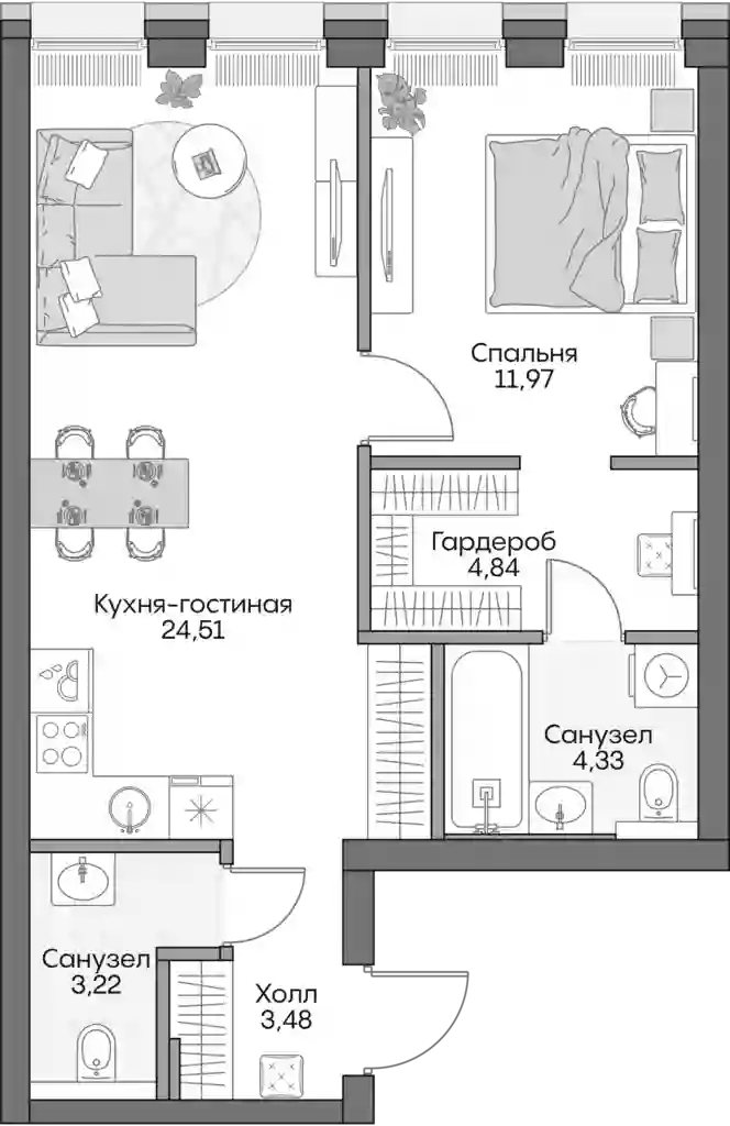2-к.квартира, 51.9 м², 6 эт. в ЖК Insider Корпус 1