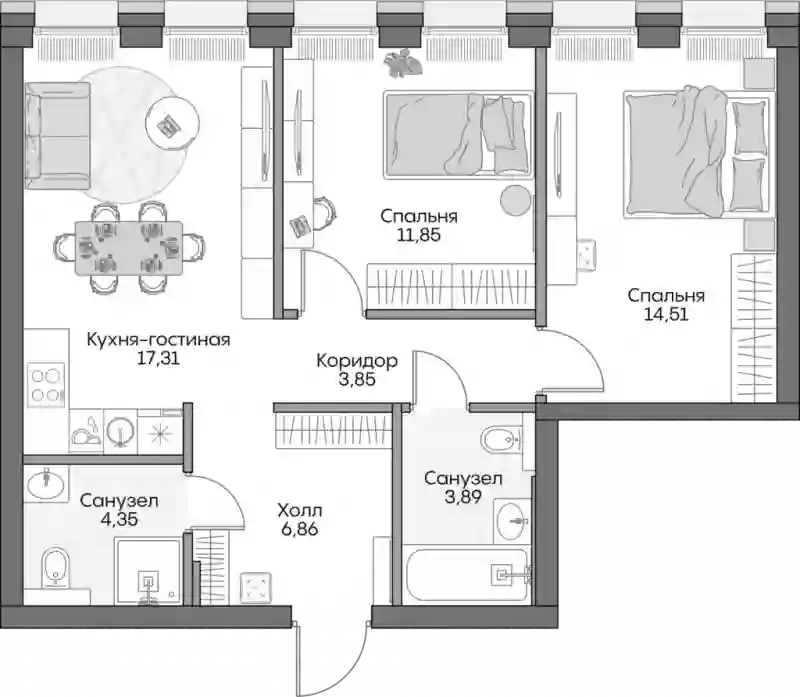 34 863 665 ₽3-к.квартира, 60.4 м², 11 эт.