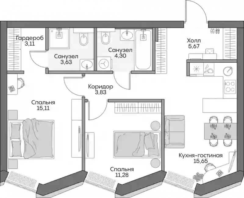 34 863 665 ₽3-к.квартира, 60.4 м², 11 эт.