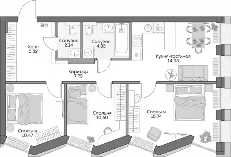 4-к.квартира, 69.7 м², 6 эт. в ЖК Insider Корпус 1
