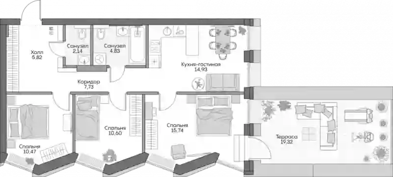 32 607 029 ₽3-к.квартира, 63.9 м², 15 эт.