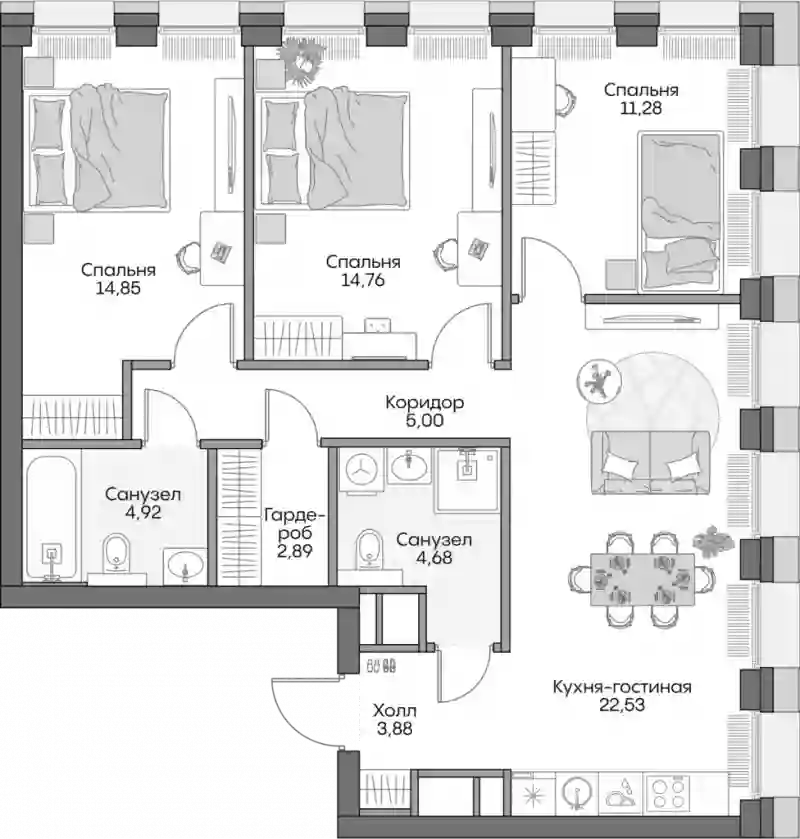 44 118 292 ₽4-к.квартира, 79.4 м², 21 эт.