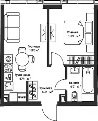 30 368 288 ₽2-к.квартира, 40.73 м², 11 эт.