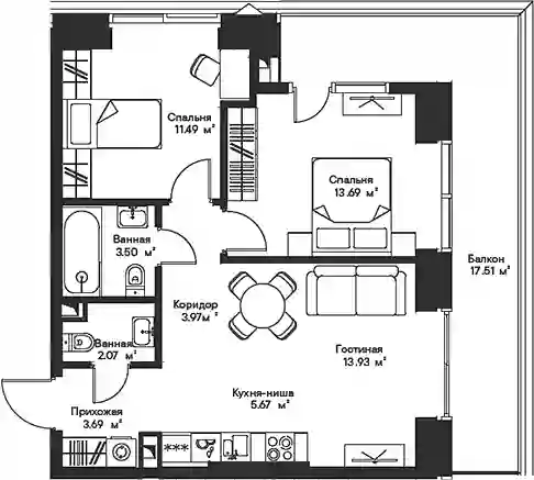 42 493 220 ₽3-к.квартира, 63.14 м², 50 эт.
