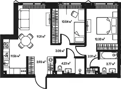 39 307 490 ₽2-к.квартира, 55.7 м², 9 эт.