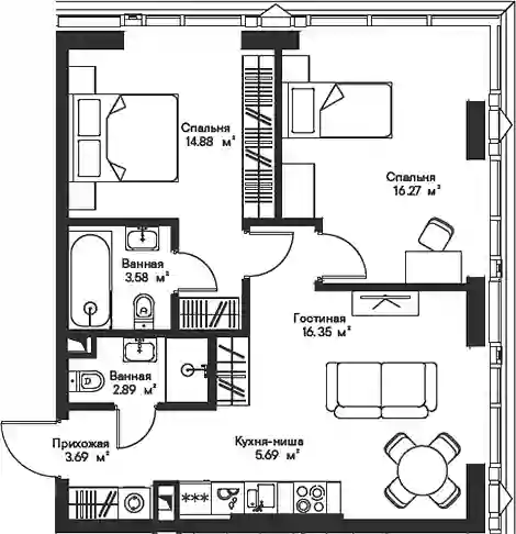 В ЖК «Jois» предложено множество планировочных решений от студий до 3-комнатных квартир европейского формата с просторной кухней-гостиной. Доступны также эксклюзивные лоты: двухуровневые пентхаусы со вторым светом и сауной, квартиры с мастер-спальней, квартиры с открытыми террасами с зоной для камина, джакузи или барбекю. На террасах выполнено озеленение. Квартиры сдаются с подчистовой отделкой, панорамным остеклением и высокими потолками от 2,9 до 6 метров.