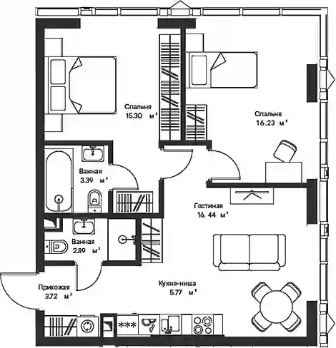 30 648 845 ₽2-к.квартира, 57.4 м², 3 эт.