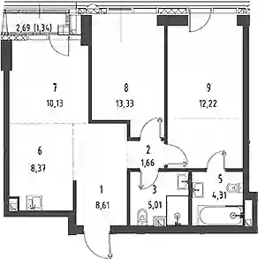 43 772 212 ₽3-к.квартира, 70.32 м², 13 эт.