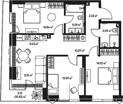 49 114 366 ₽3-к.квартира, 73.05 м², 14 эт.
