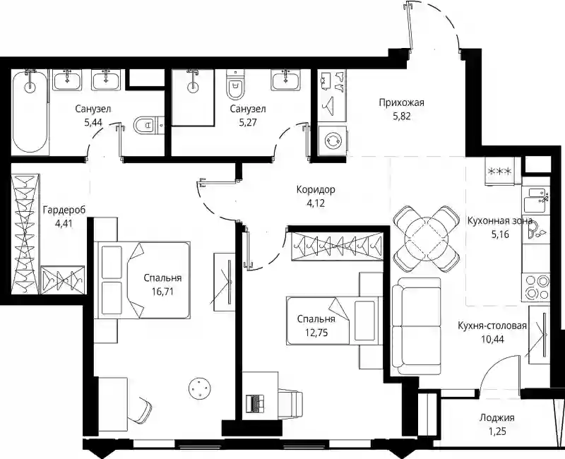 39 856 000 ₽3-к.квартира, 75.5 м², 12 эт.