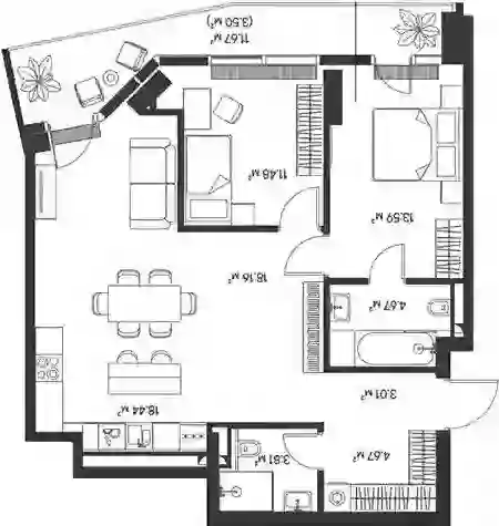 43 560 000 ₽3-к.квартира, 79.8 м², 13 эт.