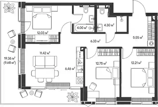 39 620 342 ₽3-к.квартира, 79.3 м², 21 эт.