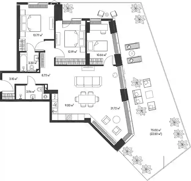 44 122 905 ₽3-к.квартира, 70.32 м², 13 эт.
