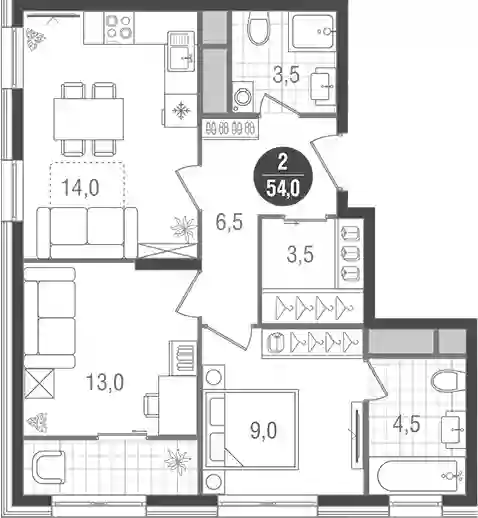 19 142 738 ₽2-к.квартира, 54 м², 12 эт.