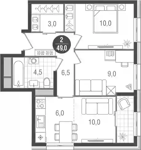 18 821 404 ₽2-к.квартира, 50.5 м², 21 эт.