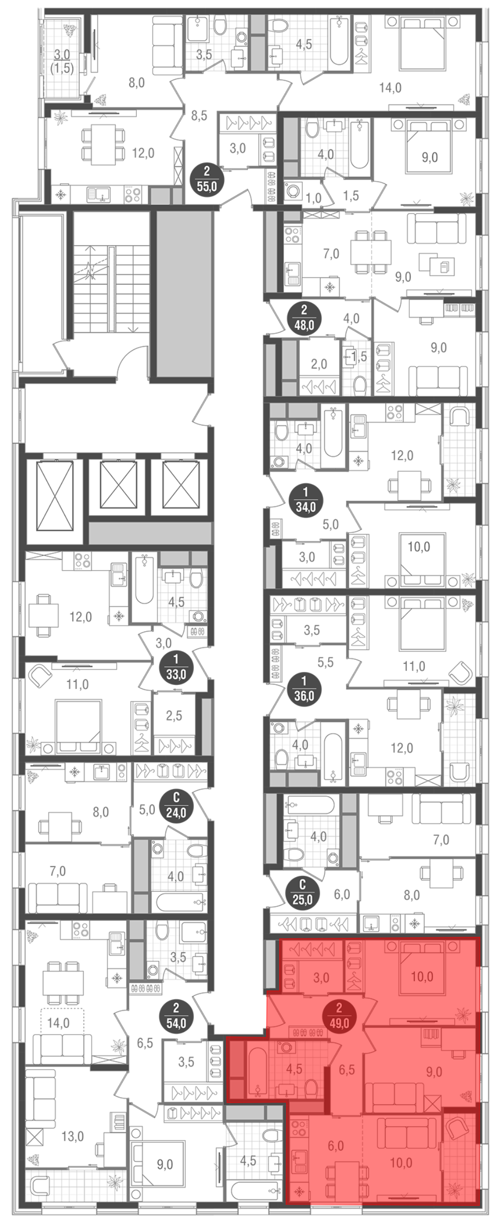 3-к.квартира, 49 м², 17 эт. в ЖК Кантемировский Корпус 2