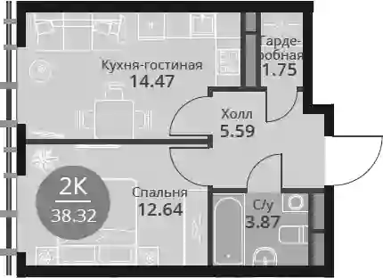 18 459 392 ₽2-к.квартира, 37.91 м², 25 эт.
