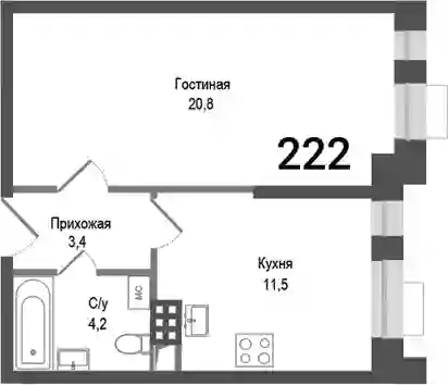 7 497 000 ₽1-к.квартира, 41.3 м², 4 эт.