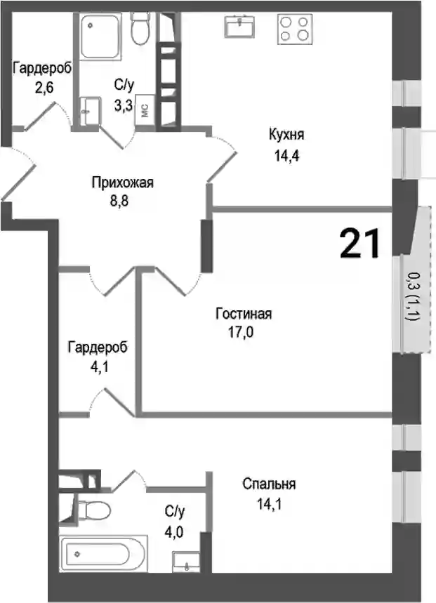 7 741 800 ₽1-к.квартира, 41.1 м², 3 эт.
