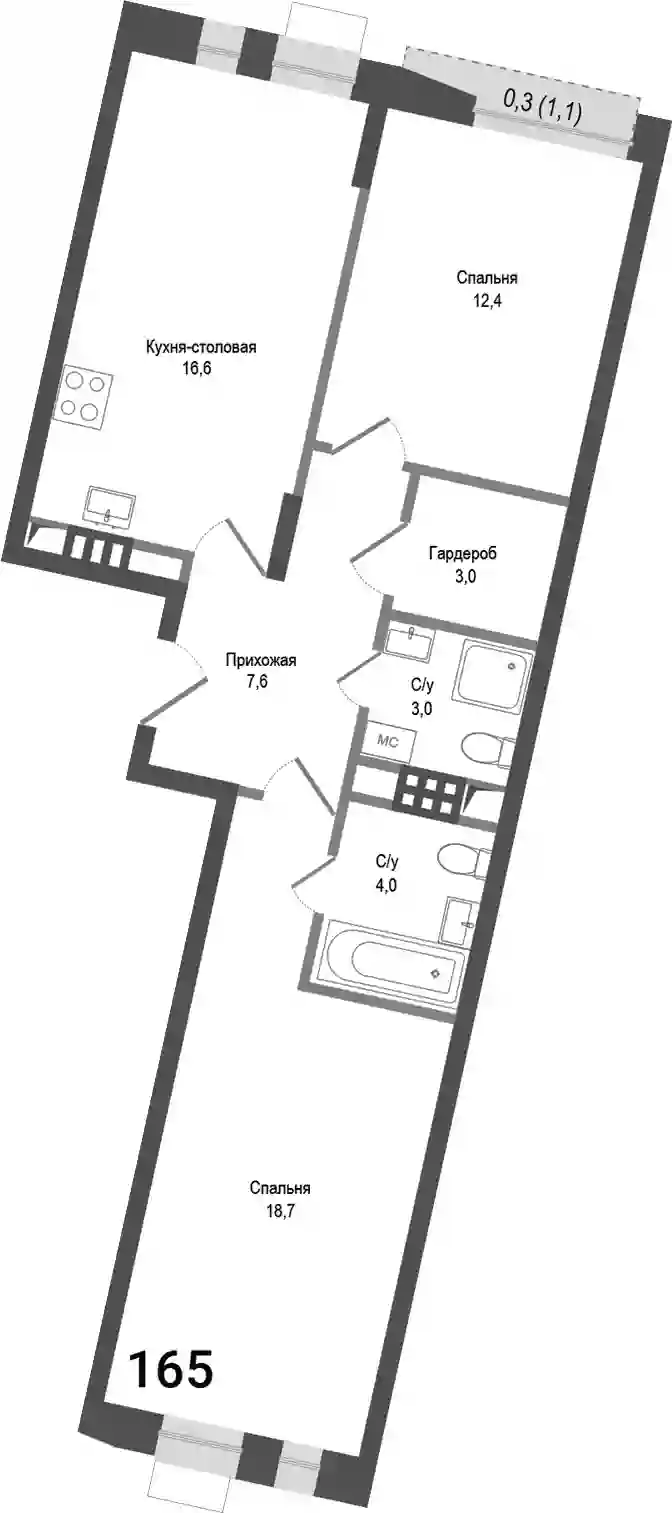 11 556 600 ₽2-к.квартира, 61.3 м², 3 эт.