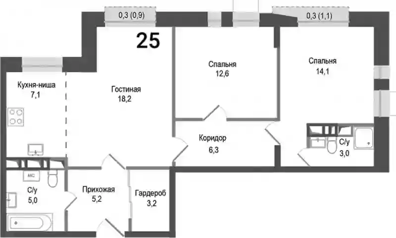 12 142 200 ₽3-к.квартира, 67.6 м², 3 эт.