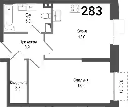 8 518 000 ₽1-к.квартира, 41.1 м², 3 эт.