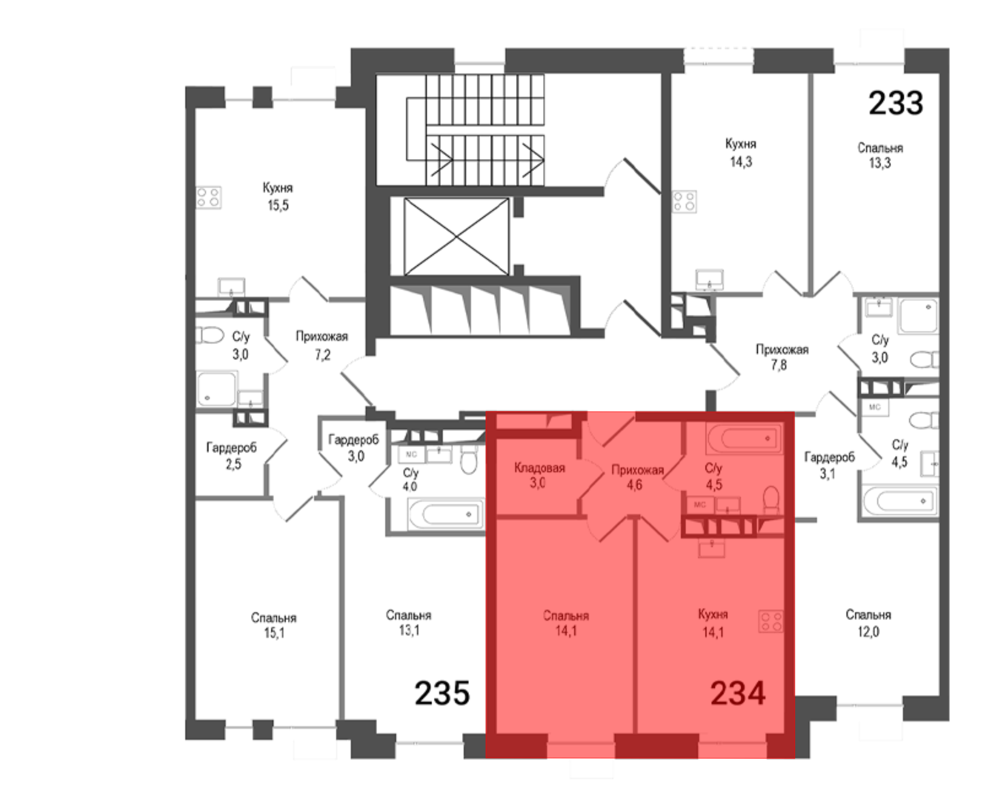 8 234 400 ₽1-к.квартира, 43.5 м², 4 эт.