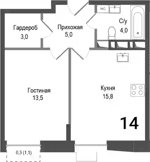 7 741 800 ₽2-к.квартира, 41.3 м², 5 эт.