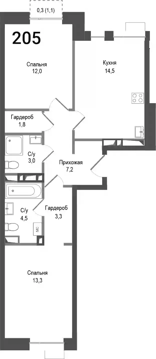 11 332 200 ₽2-к.квартира, 60.6 м², 4 эт.