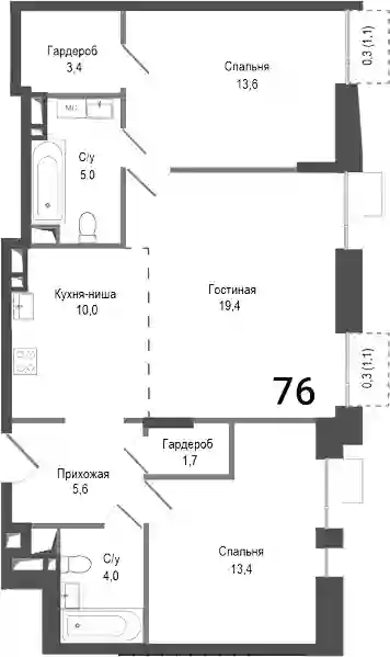 12 417 900 ₽3-к.квартира, 77.8 м², 3 эт.
