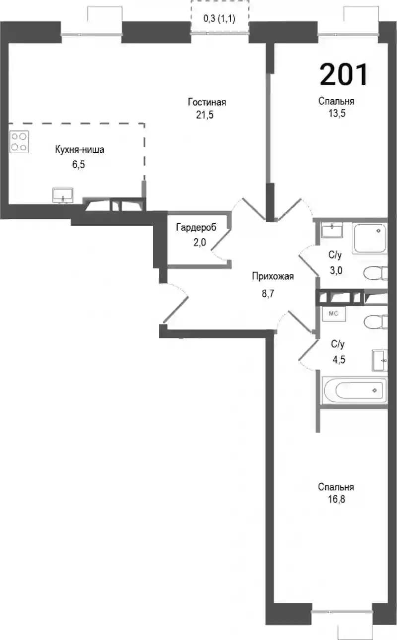 11 529 200 ₽3-к.квартира, 70.3 м², 8 эт.