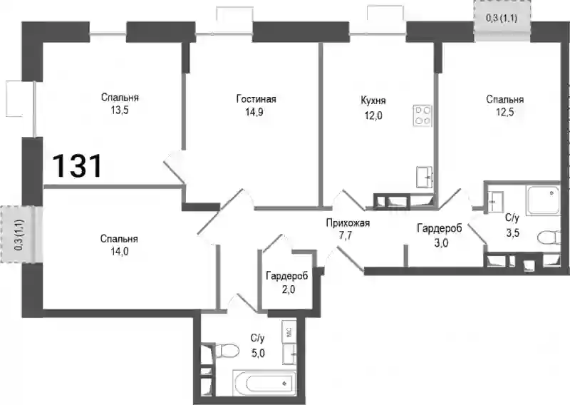 11 907 000 ₽3-к.квартира, 70.3 м², 6 эт.